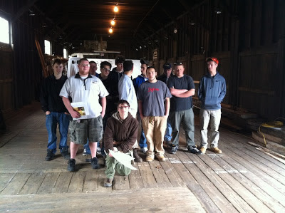 As many of may remember, the students provided us with the new electrical and lighting systems -- one of our core restoration projects completed in 2012! Their hard work has transformed the Freight Shed into a viable year-round space, allowing us to welcome the Bath Farmers Market to their new warm and welcoming winter location on market Saturdays and during the week, serve as additional space for the ongoing work of Maine's First Ship reconstruction of the Virginia. We'll never get tired of saying "Thank you to all the BRCTC students!"